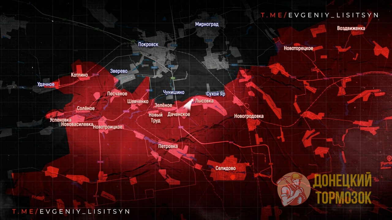 На Покровском фронте продолжаются интенсивные сражения. Сообщается о завершении зачистки Котляровки, а также о прорыве вглубь Орехово — штурмовые группы закрепились на второй улице в центре села. ВСУ признали утрату Успеновки и присутствие ВС РФ в Новоалександровке. По Новопавловке нанесён удар авиацией, разрушен мост через реку Солёная. Активные позиционные бои идут в районах Удачного, Котлино, Зверево и Шевченко. Министерство обороны РФ подтвердило освобождение Лысовки. На этом участке российские силы стремятся продвинуться к Чунишино и Новоукраинке. Восточнее поступают сообщения об освобождении Миролюбовки, однако официального подтверждения пока нет. Продолжается форсирование Казённого Торца, в район подтягиваются дополнительные силы из Гродовки.