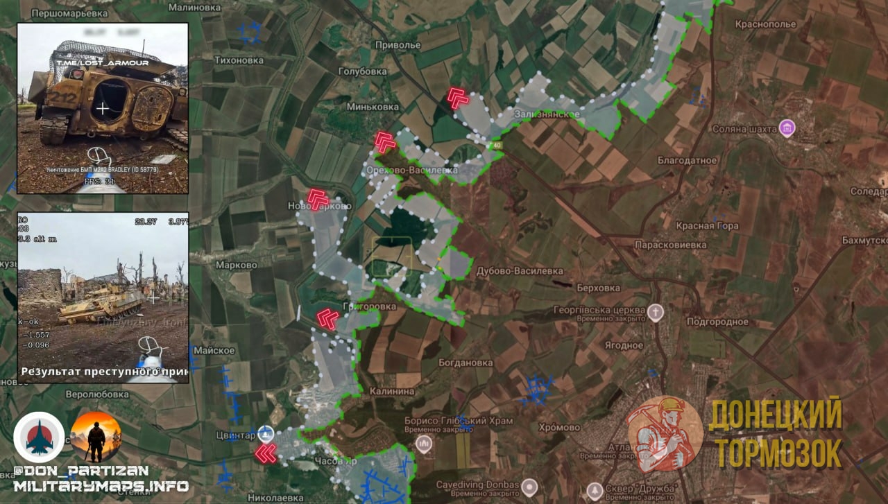 Продвижение ВС РФ зафиксировано южнее и западнее огнеупорного комбината, где российские силы заняли участок шириной до 1 км. Это значительно осложняет логистику и маневренность украинских войск, создавая предпосылки для окружения.