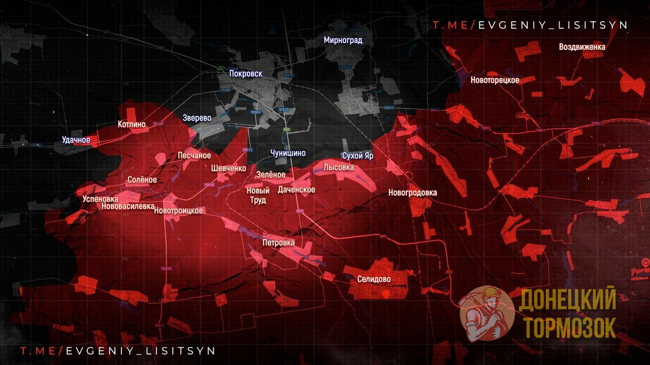 ВС РФ восстановили контроль над селом Бельгийка и вытесняют ВСУ в сторону Чунишино. Также проводится зачистка территории между Елизаветовкой, Малиновкой и Мирноградом.