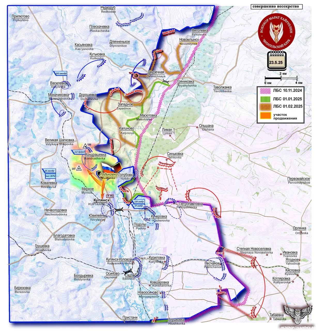 24 мая российские штурмовые подразделения продолжили наступление в Харьковской области, взяв под контроль населённый пункт Радьковка. Хотя село небольшое (по данным переписи 2001 года — 39 жителей), его освобождение имеет важное тактическое значение.