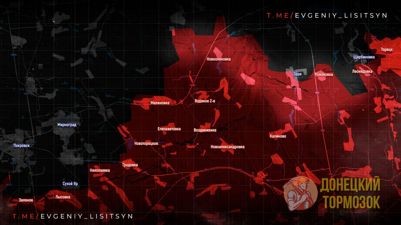 На Покровском направлении (Красноармейск) российская армия развивает наступление к западу от Богдановки, приближаясь к административной границе с Днепропетровской областью. Жестокие сражения разворачиваются в районе Муравки и Новосергеевки. В Удачном и Котлино продолжаются позиционные бои. С восточного фланга ВСУ пытаются контратаковать из района Новоэкономического, но остановить продвижение российских частей им не удаётся. Появились данные, что российские штурмовые группы вошли в село Мирное и освободили большую часть населённого пункта.