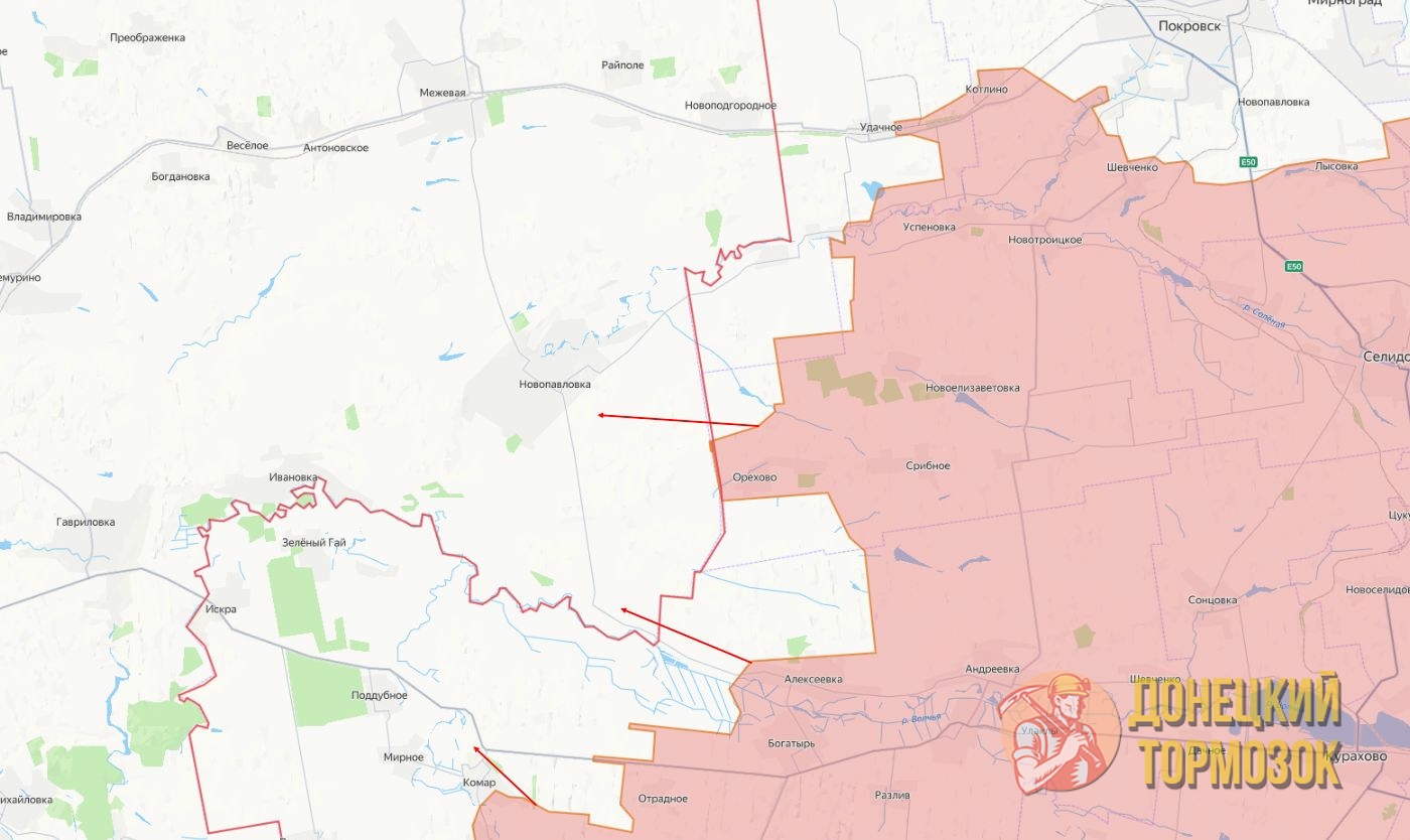 На военных картах уже несколько дней обозначено уверенное российское вклинивание в районе села Орехово. Эксперты отмечают: передовая продвинулась не точечно, а широким фронтом. Особенно горячо сейчас в районе Новопавловки, по украинским позициям работают тяжёлые огнемётные системы «Солнцепёк», а это, как правило, предвестие скорого штурма.