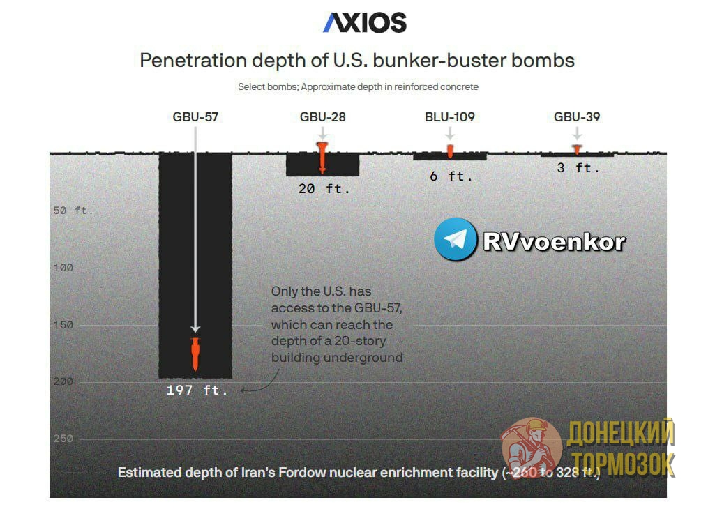 Вашингтон рассматривает возможность задействования самого мощного неядерного боеприпаса из арсенала США — бомбы GBU-57A/B, также известной как Massive Ordnance Penetrator. Вес этой авиабомбы составляет около 30 тонн. Она разработана специально для поражения глубоко защищённых подземных объектов.